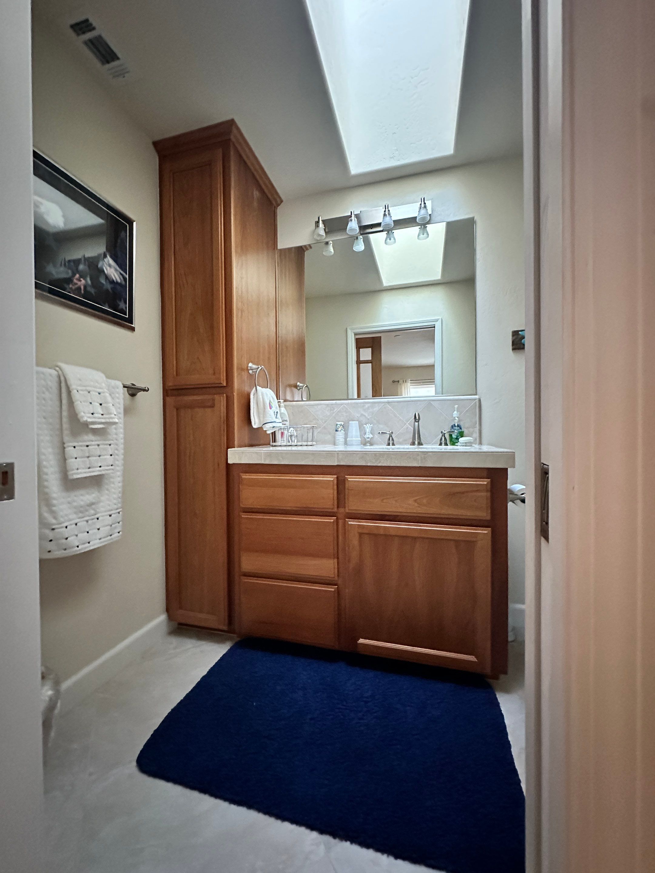 This Morro Bay bathroom was small but thoughtfully laid out. The cabinetry was in good condition, but the original wood finish made the space feel darker and more enclosed than the homeowner wanted. The goal was to brighten the room and give it a clean, updated look—without changing the layout.