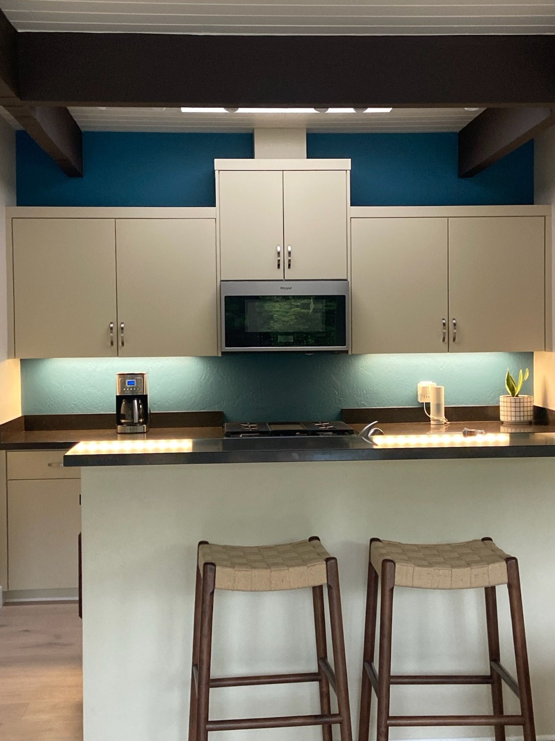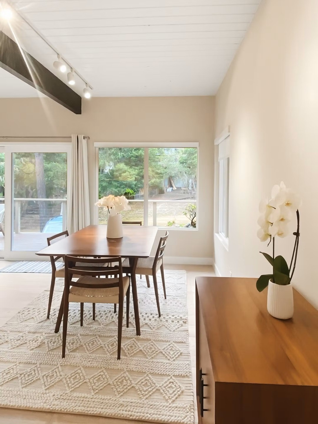 For this Cambria home, the goal was simple — refresh the interior ceilings and exposed beams to make the living spaces feel lighter and more open. Over time, darker tones and age had left the rooms feeling a bit heavy. The homeowner wanted a clean, updated look that complemented the home’s natural light and coastal charm.